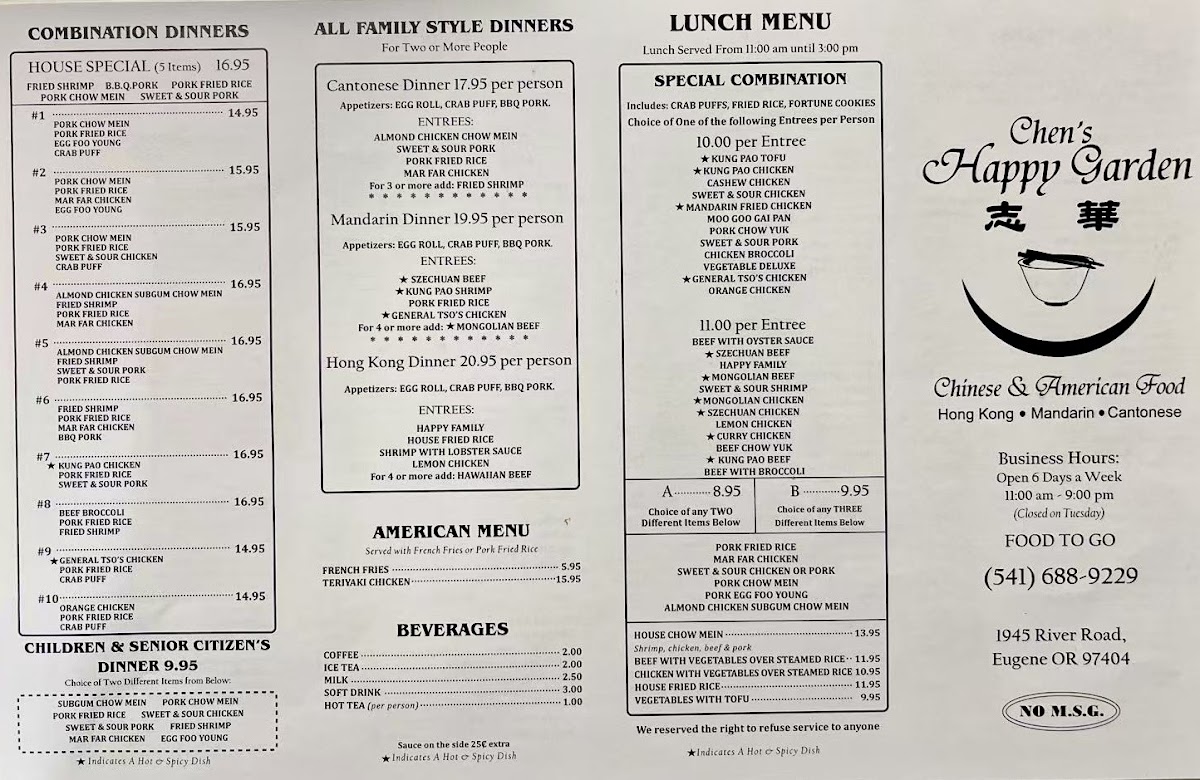 Chen's Happy Garden Menu